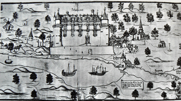 P. Marchant a donc connu le château en 1533, tel qu'il est représenté sur le rouleau d'Apremont, et il est regrettable qu'il n'est pas laissé un récit détaillé de sa visite à Saint-Nicolas et au château féodal remanié par les du Bellay.
