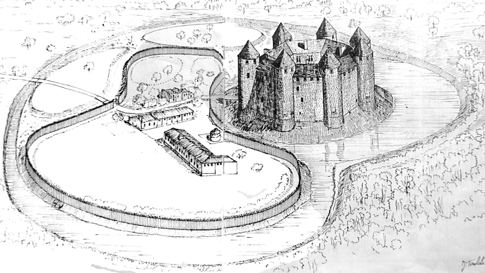 Il est bien évident que le dessin, que nous venons de disséquer, n'est qu'un représentation très schématique et très condensée de l'ensemble du château, dont six tours sur huit sont invisibles et que la construction centrale n'est que l'une de celle de l'enceinte. Mais notre document est cependant suffisant pour nous permettre de comparer ce château à ceux même de l'époque, bien conservés encore, tels ceux du midi de la France, par exemple.