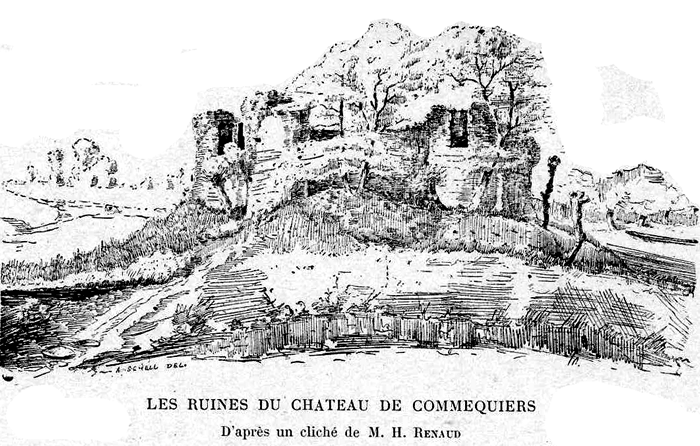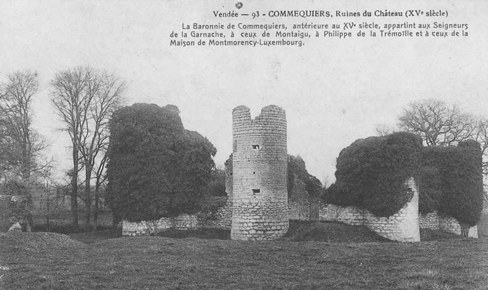 Par le plus grand des hasards, on possède, du vieux château féodal de Commequiers, restauré, antérieur à celui de la Garnache, un dessin qui donne, en petit, l'état dans lequel se trouvait cette demeure seigneuriale en 1542.