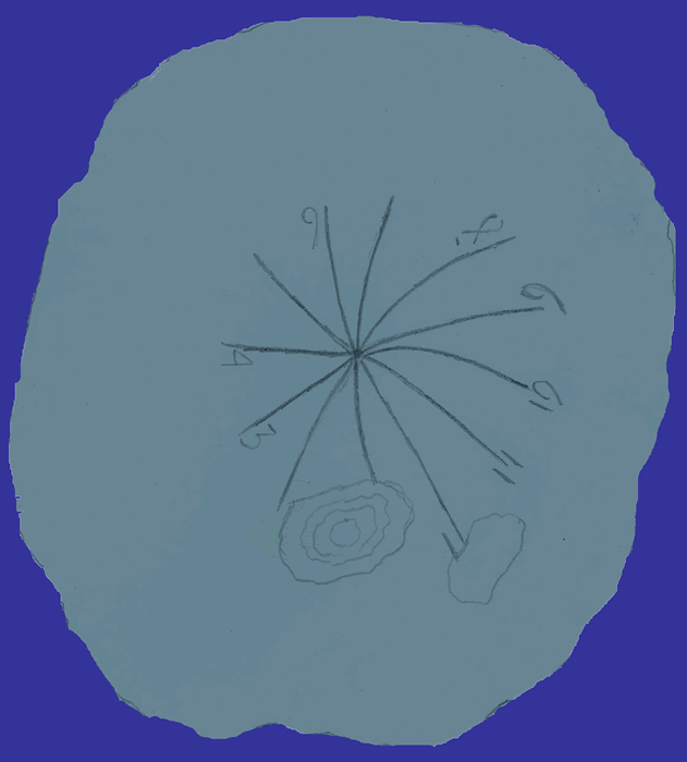 Nous supposons que les ardoises gravées que l'on va rencontrées sur ce lieu représentent des études faites par de jeunes compagnons