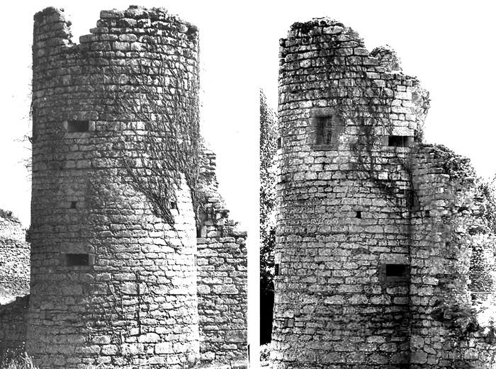 Plus tard, dans la partie Sud-Est de cette forteresse, on ajouta vers le XIe siècle peut-être, un donjon énorme dont les angles s'appuient sur des tours rondes percées de meurtrières pour le service de l'artillerie.