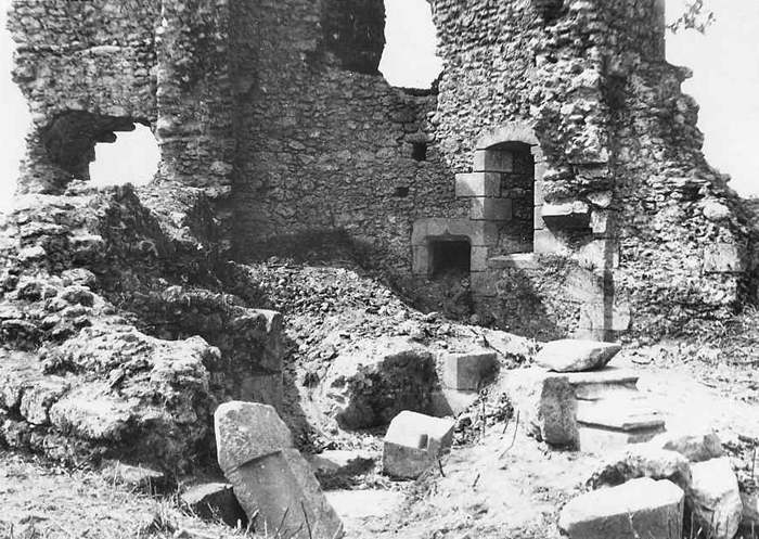 Le monument religieux était donc accolé au coin Sud-Est de l'enceinte, sur un terre plein qu'à menagé l'ancienne douve et qui portait en outre une autre maison.