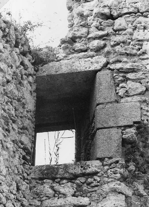 Vous pouvez constater que les ouvertures de cette tour sont toutes entourées de pierres de granit taillées, que la pierre supérieure de la porte est sculptée en accolade. Vous voyez à droite le montant de la porte qui servait à entrer dans la "cuisine". Cette tour n'a pas été dégagée.