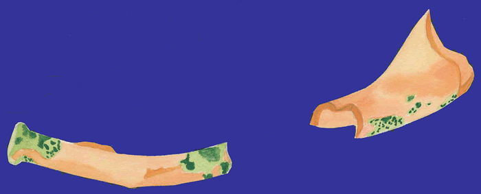 Nous avons trouvé entr'autre les morceaux de cette poterie: