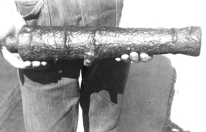 Il aurait été trouvé en 1921, par Mr. Athanase Grossain, dans une "fosse" près du château, quelle fosse ou se trouvait-elle ? Une bombarde dont nous avons la chance de posséder une photo.