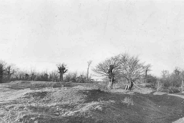 Mais il est bien évident - et il faut le répéter ici pour ne tromper personne - c'est qu'on ne sera définitivement fixé sur l'époque réelle de cette construction et de ce grand fossé de 10 m. de haut en certains points et de 10 m. de large en d'autre, que quand des fouilles importantes auront permis d'étudier la constitution même du formidable amas de terre correspondant au Nord, c'est-à-dire à la partie qui reste du vallum d'origine.
